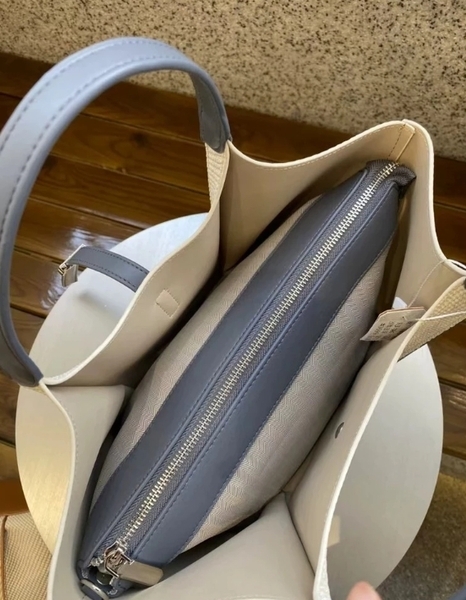 拼接撞色水餃手提子母托特包