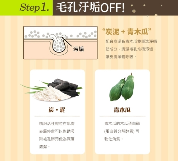 添加了炭泥+青木瓜”配合炭泥&青木瓜雙重洗淨輔助成分