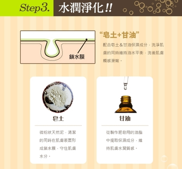 另外搭配皂土+甘油的雙重保濕成分,能維持肌膚的水油平衡