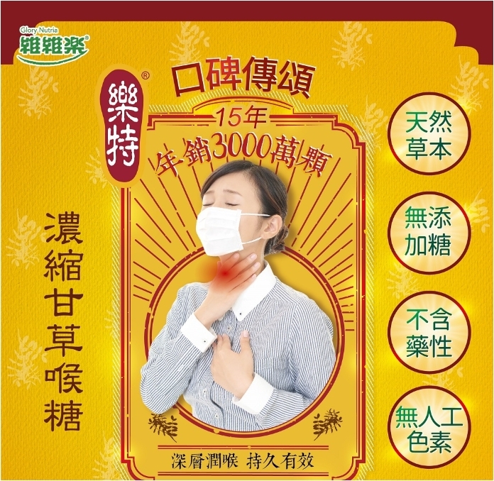 • 五倍濃縮的甘草,與薄荷、尤加利、茴香等多種草本精華,以獨特配方和製造技術,讓您更快速感受它的深層潤喉。