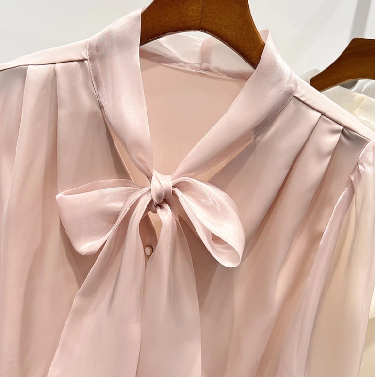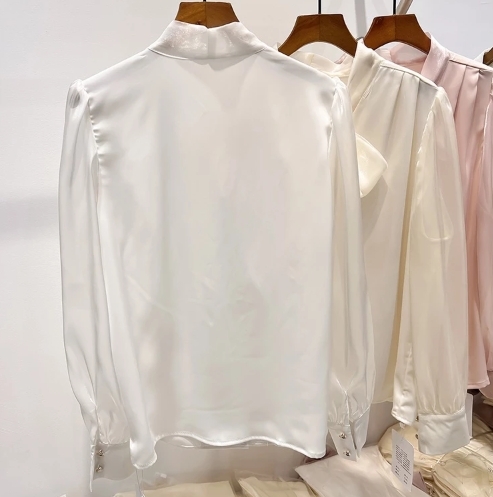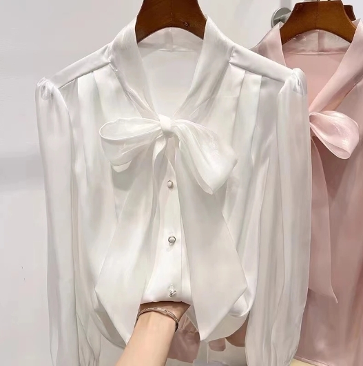 氣質顯瘦純色V領單排扣長袖雪紡襯衫
