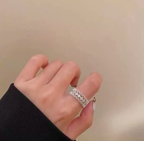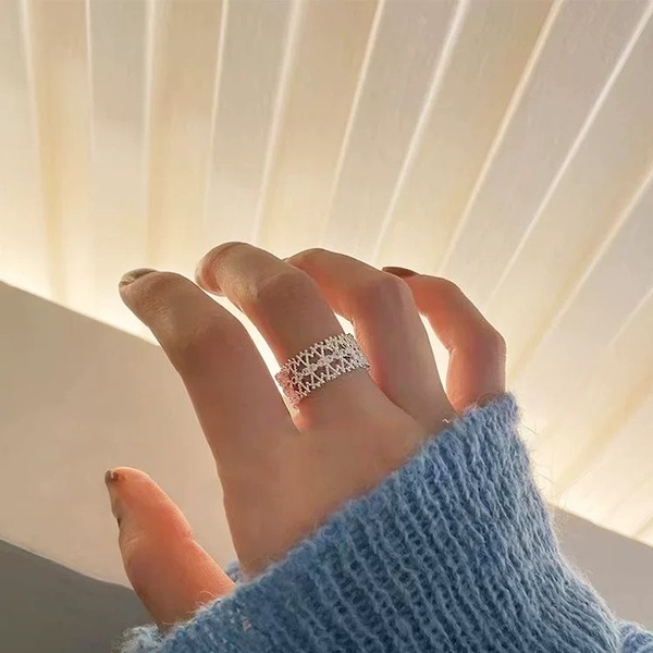 法式設計感 裙邊蕾絲鋯石食指戒指