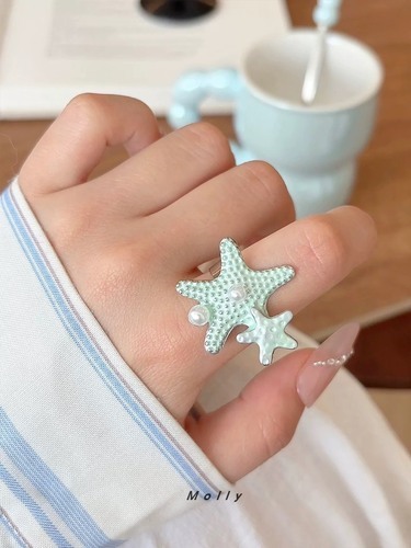 海星貝殼海螺珍珠吊墜項鍊+海星戒指