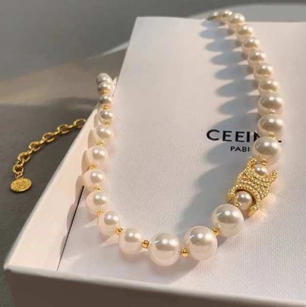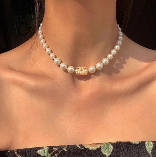 滿鑽凱旋門珍珠鎖骨項鍊