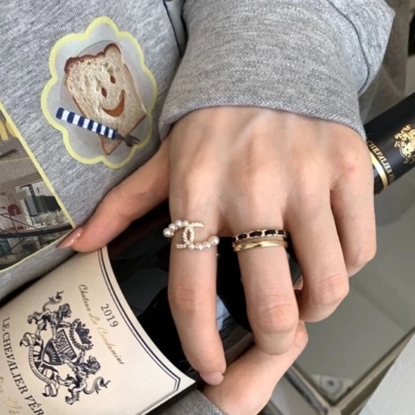 小香風鑲鑽珍珠交叉戒指 韓國氣質字母水鑽食指戒 指環