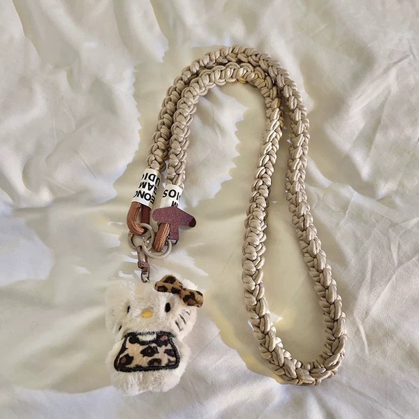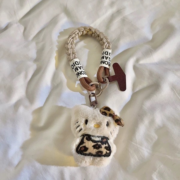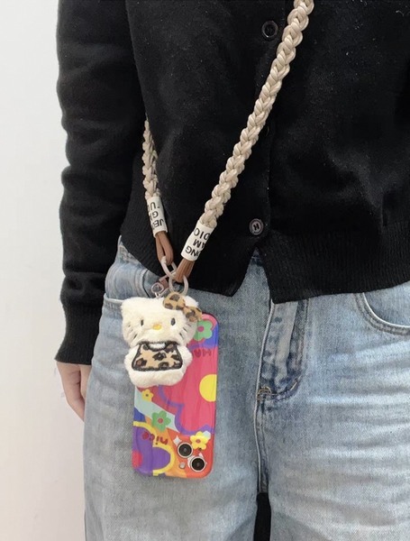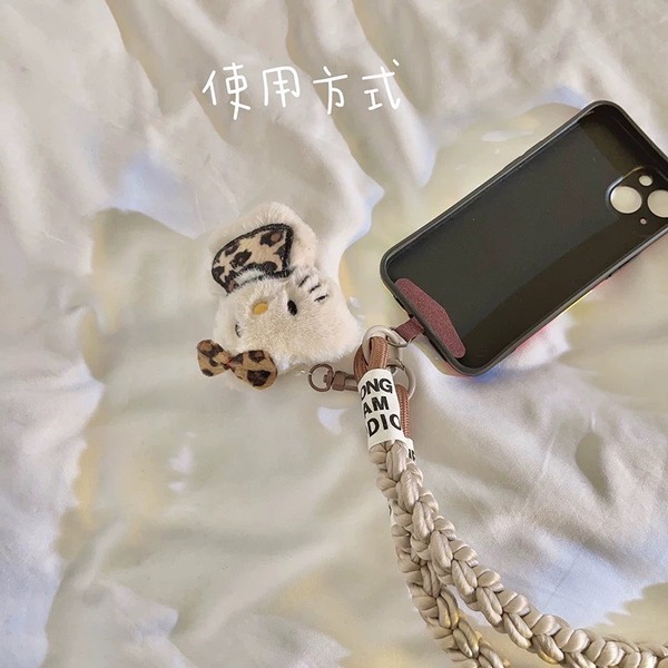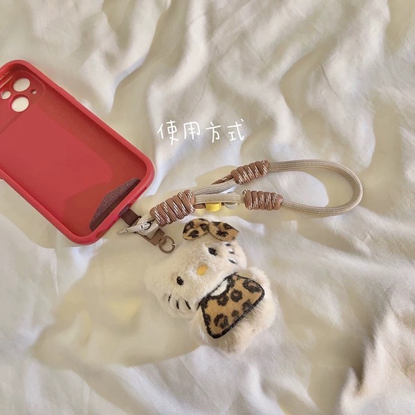 米色豹紋KITTY手拿掛繩/斜背手機繩