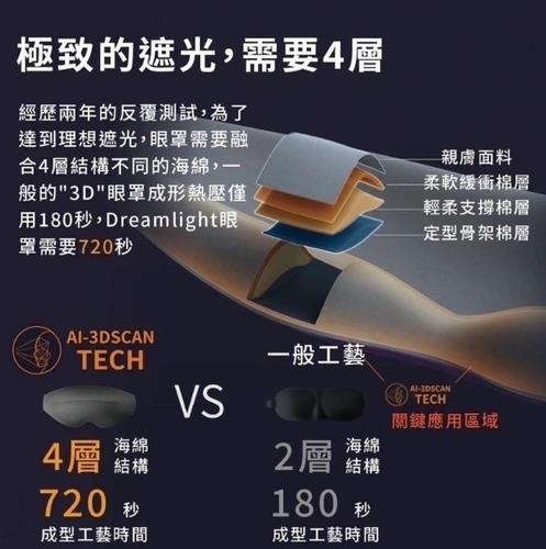 ✔️採用最新熱壓 AI-3DSCAN TECH技術 使用四層海棉工藝完美創造零光線全黑天助眠環境