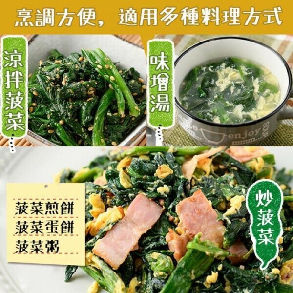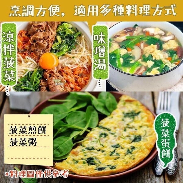 菠菜蛋花湯、韓式涼拌菠菜、木耳拌菠菜、菠菜蕃茄雞蛋湯、
