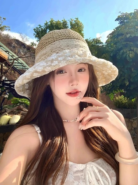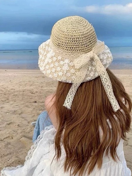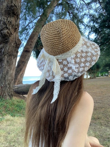 蕾絲蝴蝶結草帽大帽簷遮陽防曬帽