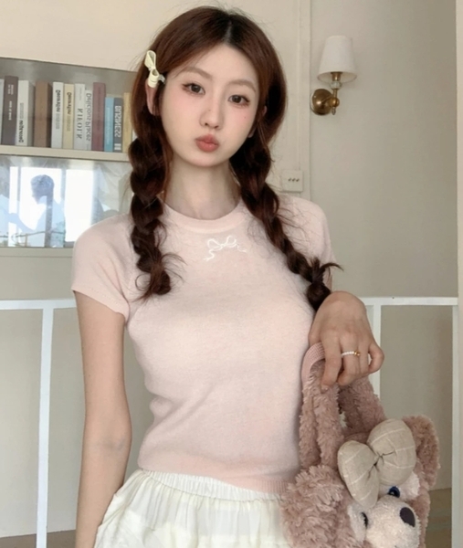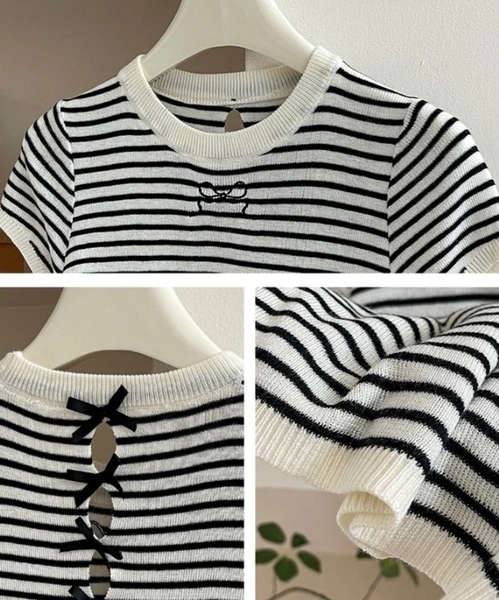 ✔ 前後皆有小心機 — 胸前精緻蝴蝶結繡花,背後獨特鏤空設計,增添層次感,簡約卻吸睛