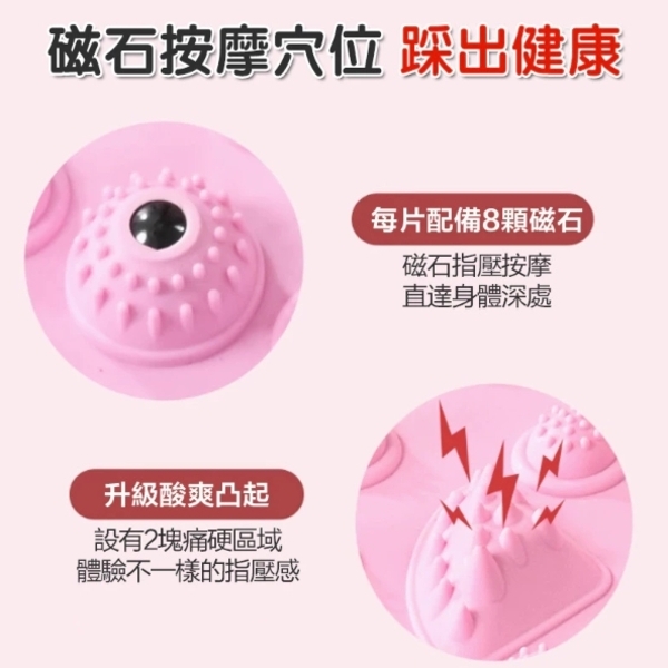 8磁石,深度養生:指壓板上精心嵌入8 顆磁石,當你踏上它,磁石產生的微弱磁場與人體生物磁場相互作用,
