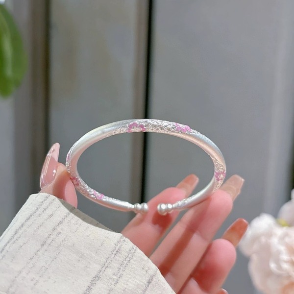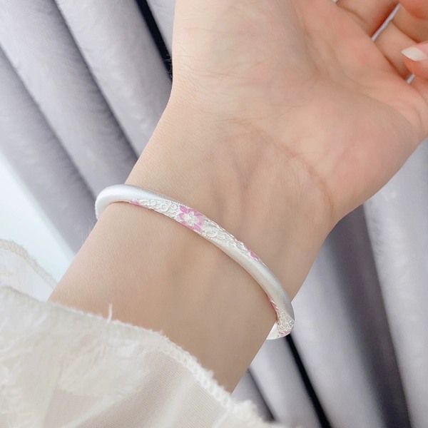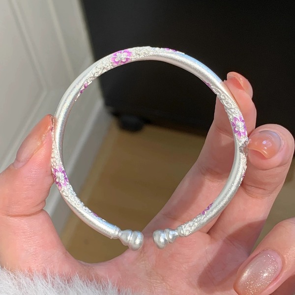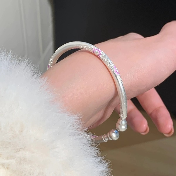 足銀9999古法琺琅扭麻葫蘆頭繁花開口手鐲