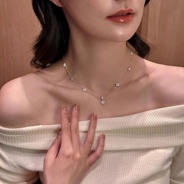 閃閃鑽石點綴 四葉草吊墜加持