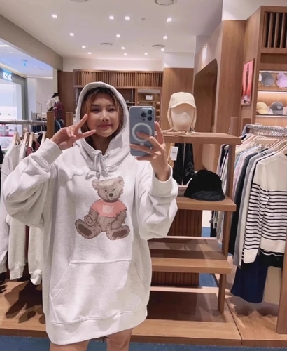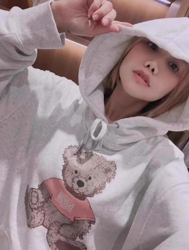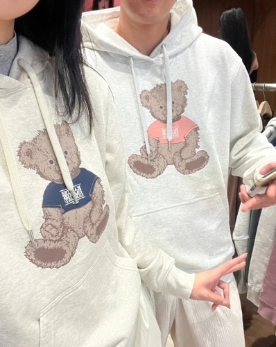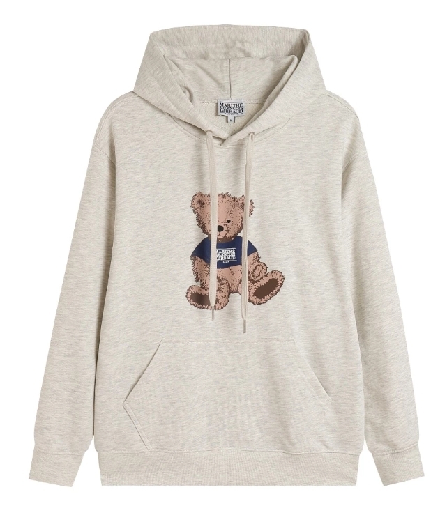 韓國 marithe小熊印花 寬鬆休閒連帽衛衣