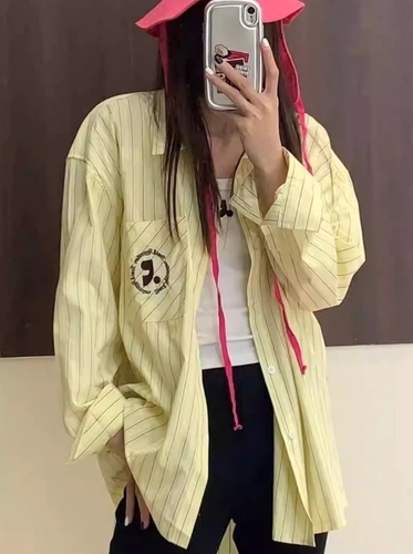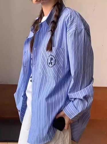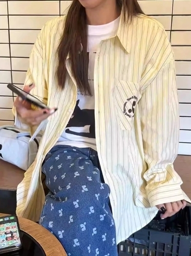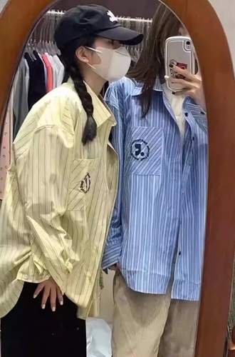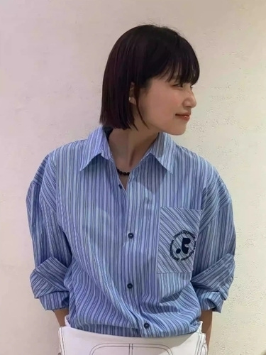 韓國 Restandrecreation RR刺繡條紋寬鬆襯衫