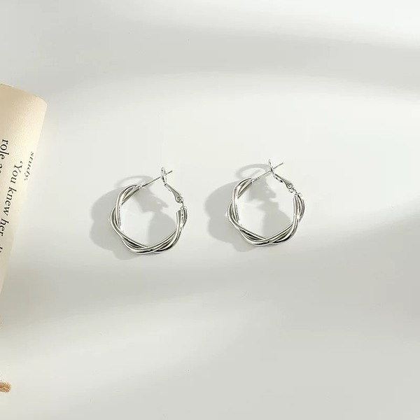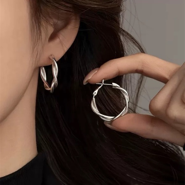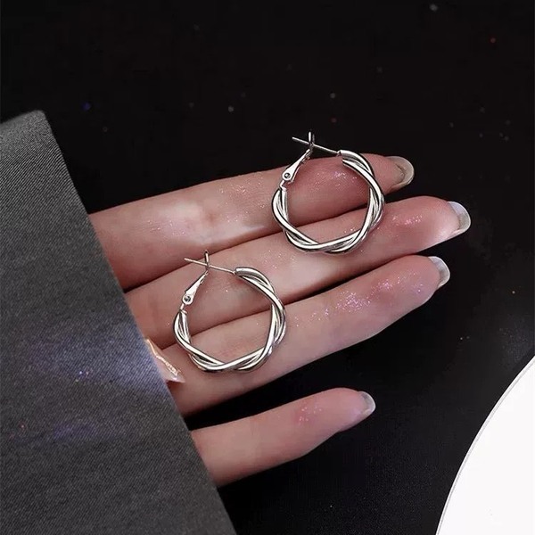 韓國 S925銀針幾何麻花耳環