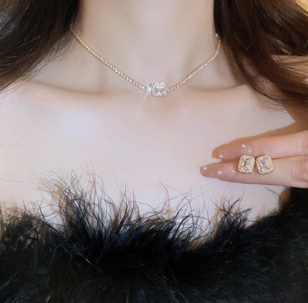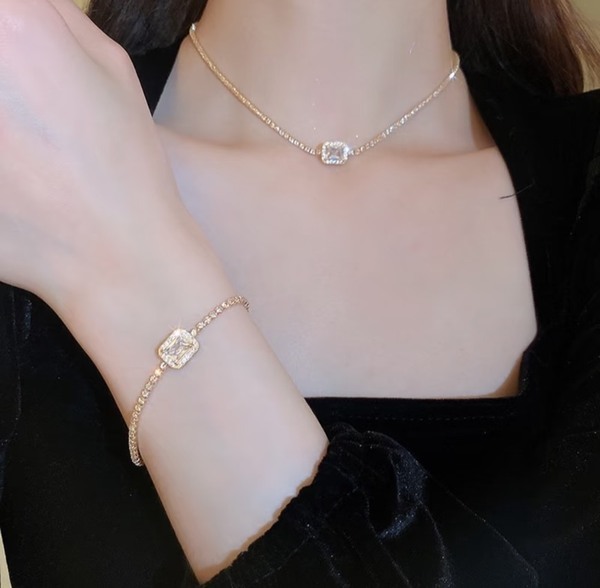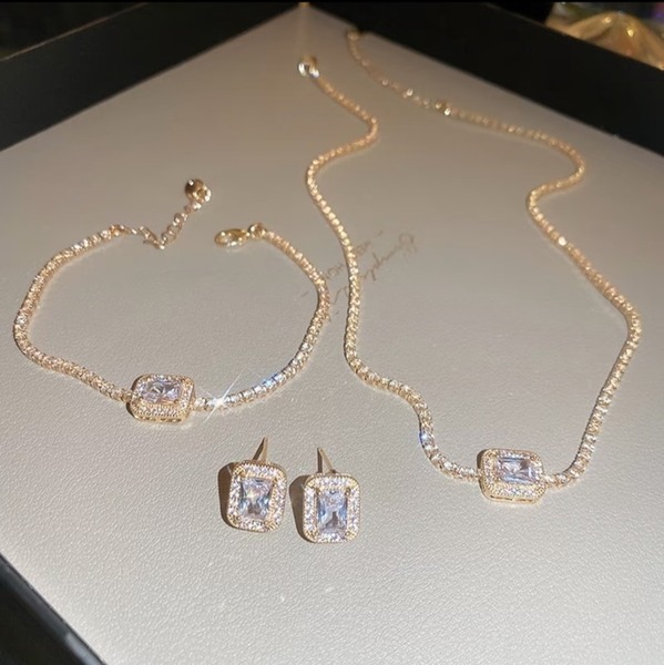 韓國鋯石耳環手鍊項鍊套裝三件組