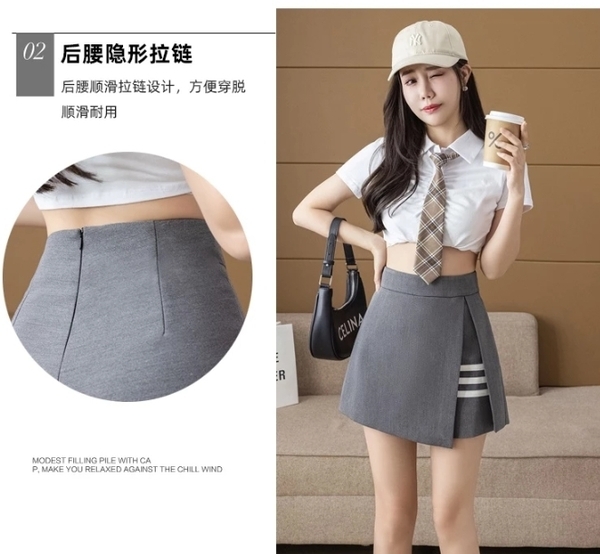 韓版高腰包臀開叉不規則A字裙