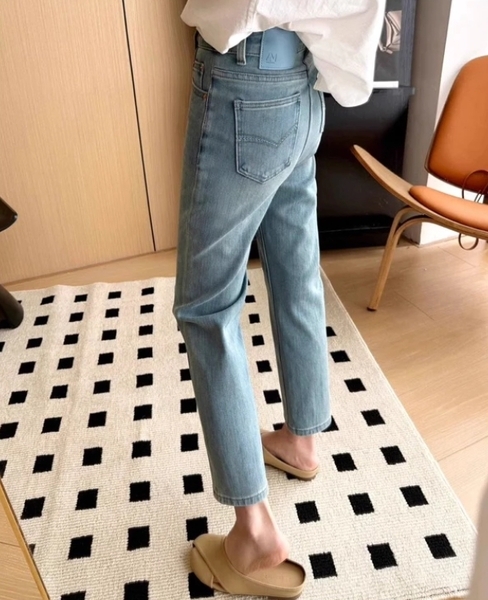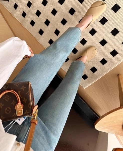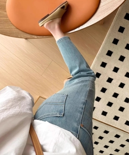 高腰顯瘦修身淺色法棍煙管牛仔褲