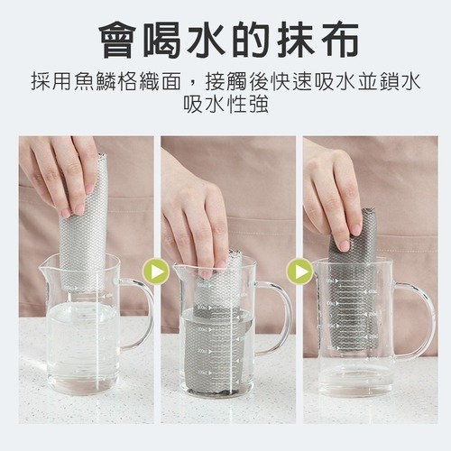 魚鱗格織面,接觸後快速吸水並鎖水,吸水力強